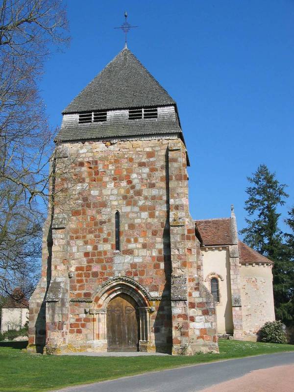 Elle est implantée sur une villa gallo-romaine donnée en 694 par le roi Childebert III à l’abbaye de Saint-Denis. La nef unique, large de 7 mètres, est précédée d’un beau clocher-porche couvert d’essences de châtaignier.